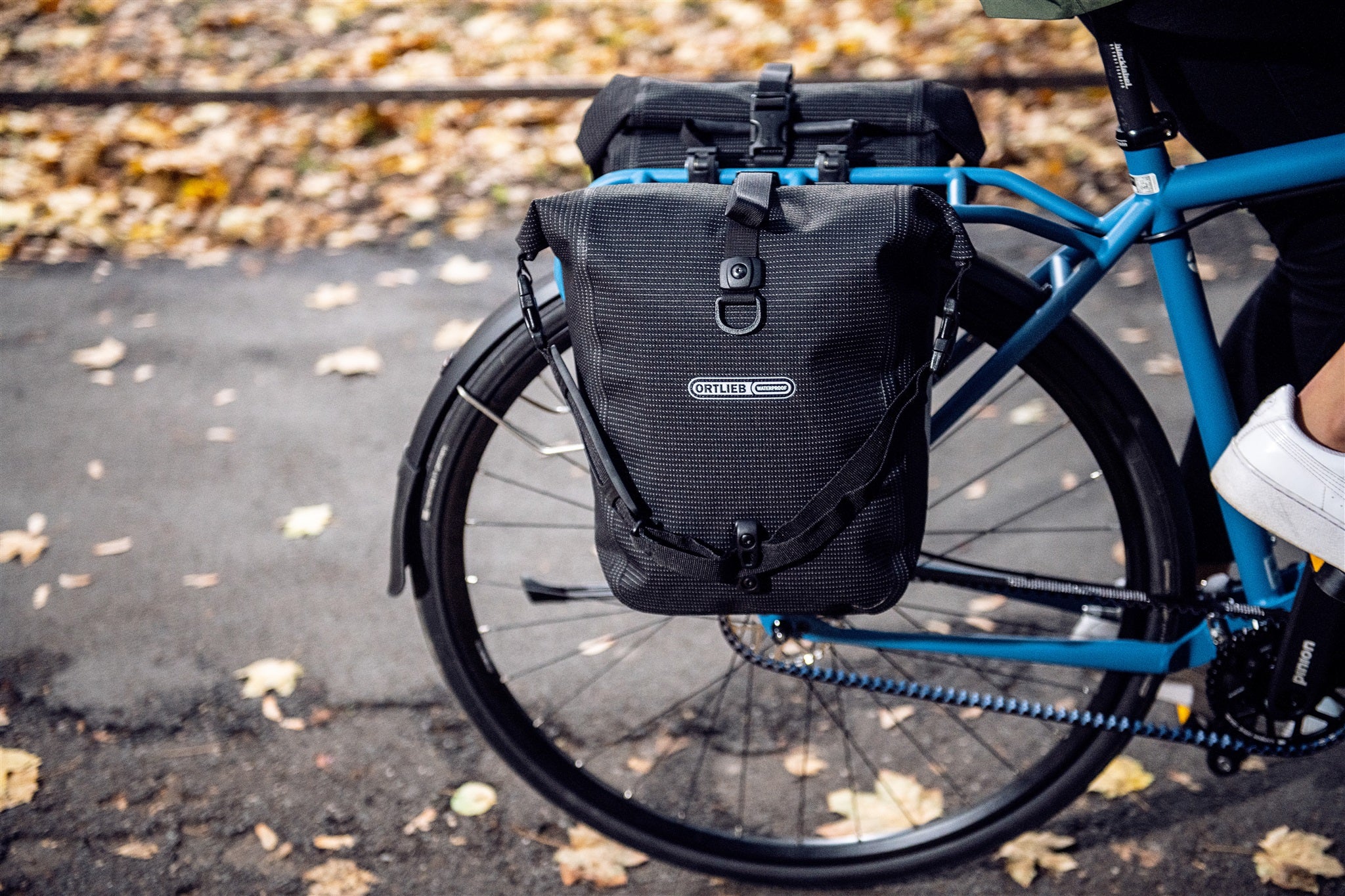 PVC-free bags with waterproof roll-top closure for bike tours