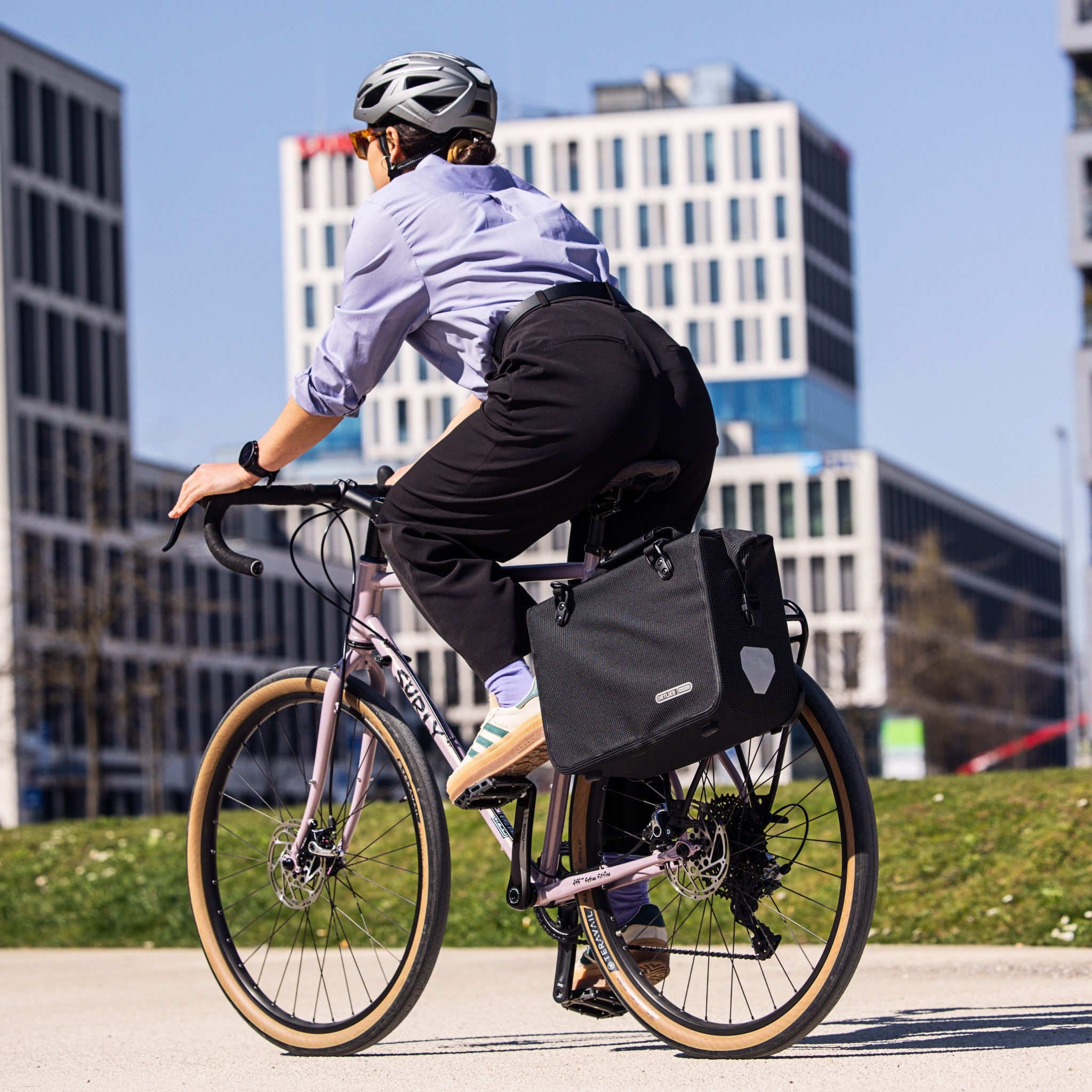 The QL3.1 system is especially developed for office and city bags an its secret lies in the fact that the main mounting components stay on the rack. This results in a smooth rear side of the bag that is free of protruding hooks, and significantly improves the bag’s carrying comfort when off the bike. The QL3.1 system has all the known advantages of the previous ORTLIEB QL systems.