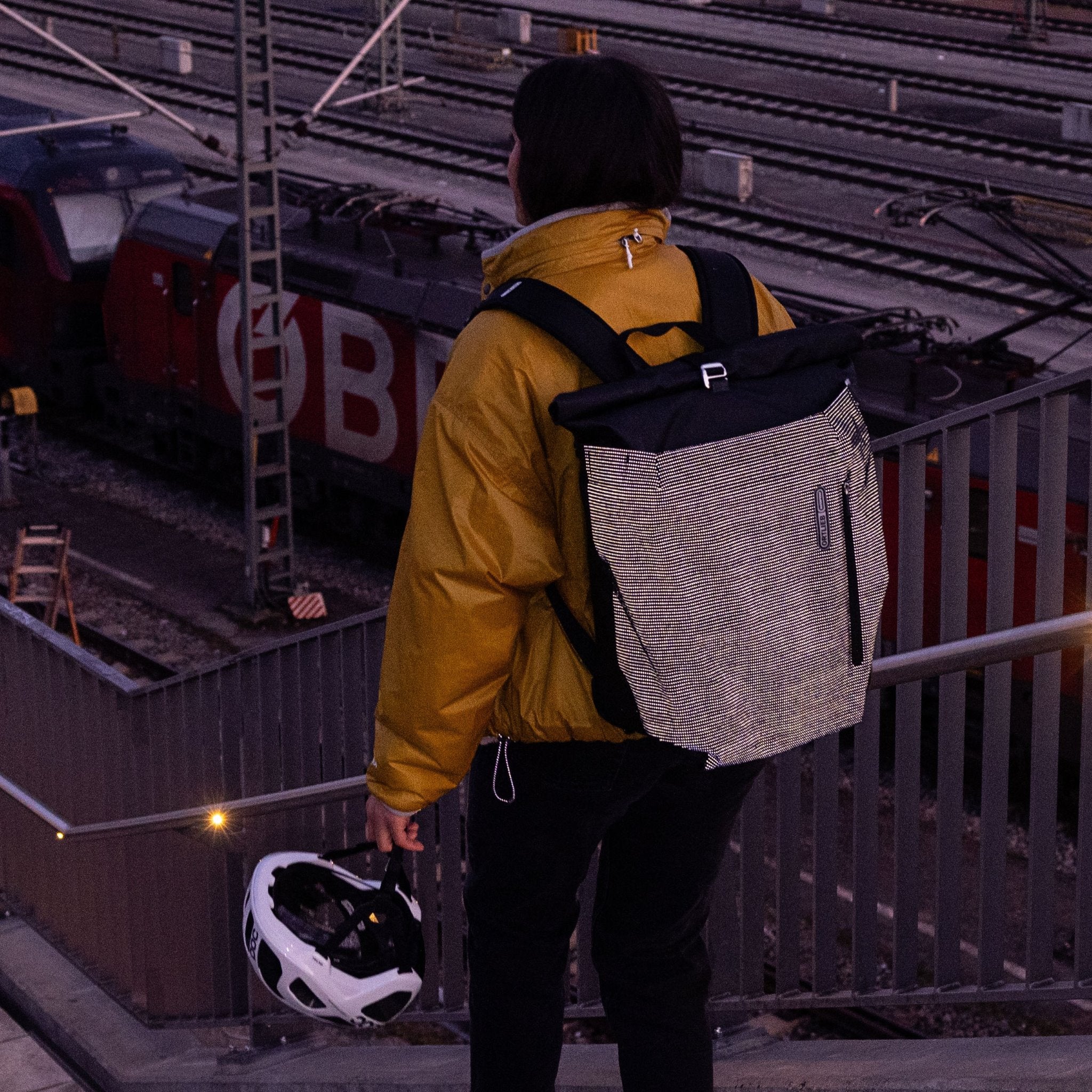 This high-end daypack offers the highest level of safety. The interwoven reflective yarn transforms it into your personal bodyguard from dusk to dawn.