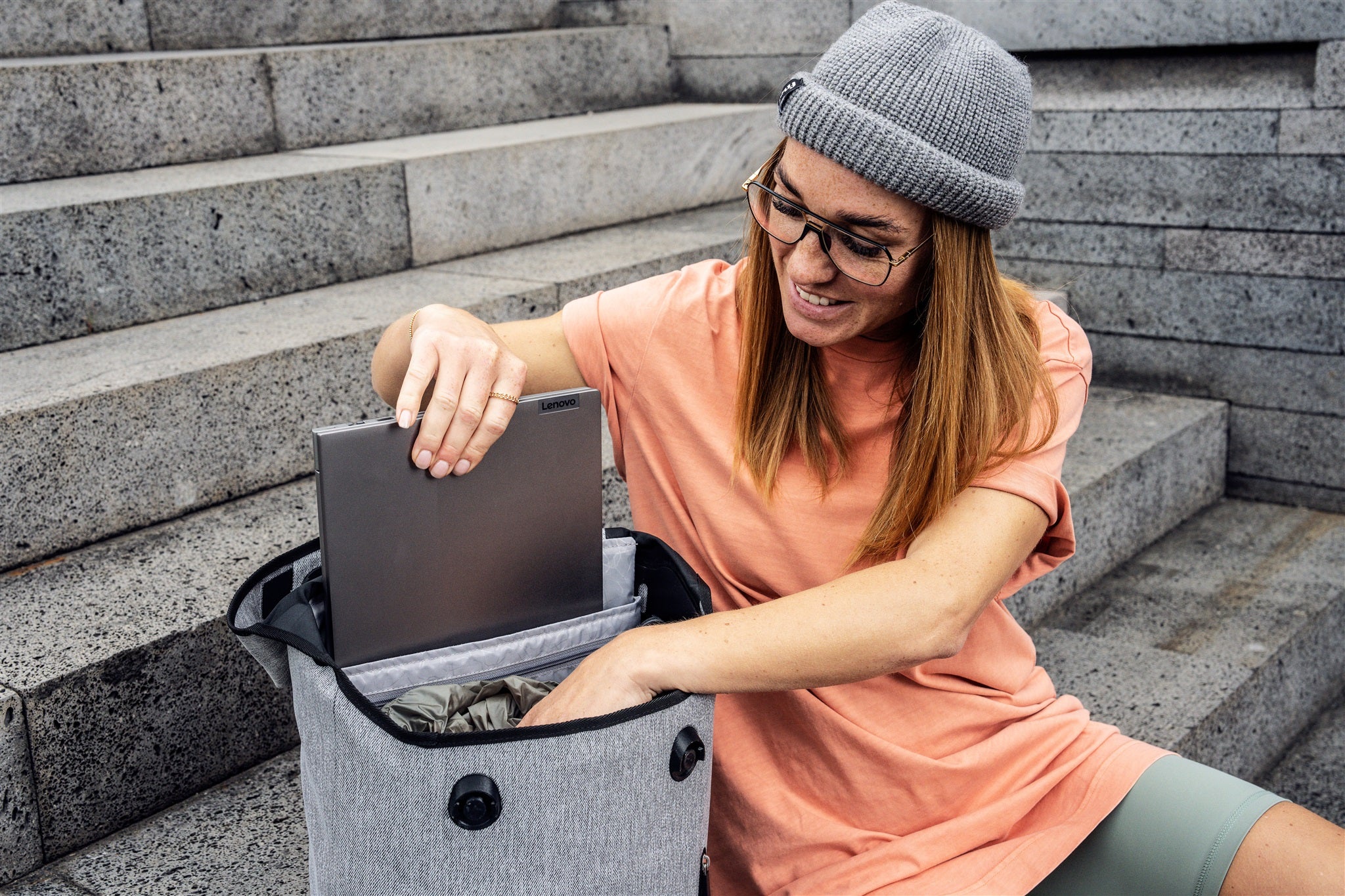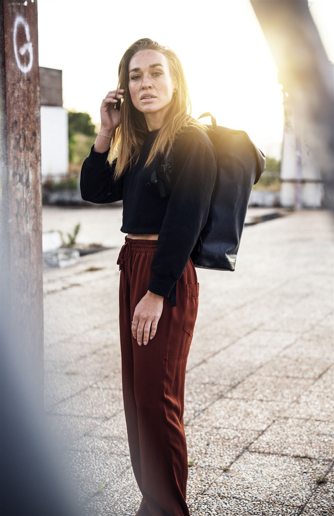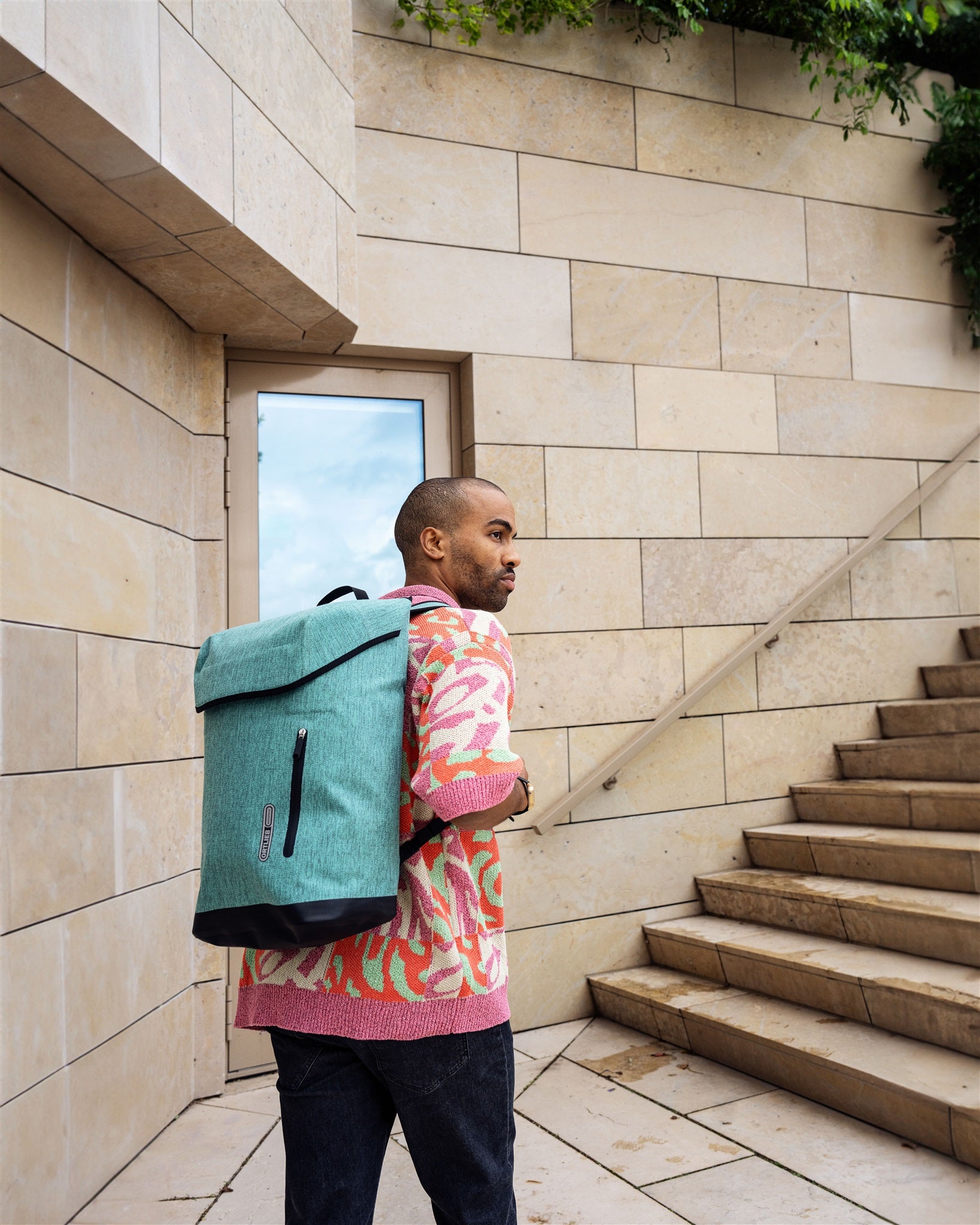 Minimalist city backpack with practical magnetic lid closure and additional lock.